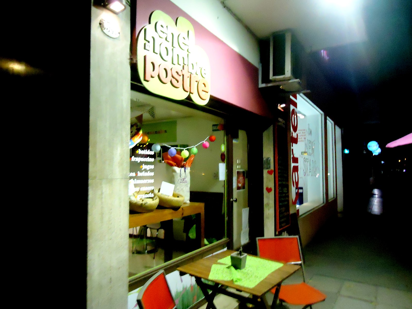 De un ambiente minimalista por los motivos de decoración y los colores, aunque Noveau por las disposiciones, este Restaurant Dulce invita al bien estar y a la armonía, y la atención es igualmente satisfactoria, de inicio a fin. Los menúes ensartados (abrochados) a una tabla pintada de colores con el Logo del negocio, indican los precios, accesibles pero no baratos, de toda una gama de dulces que va más allá de una confitería tradicional, pudiendo caracterizarla de Gourmet sin ningún problema. ¡Deberían ver las variedades de gustos y propuestas que tiene!