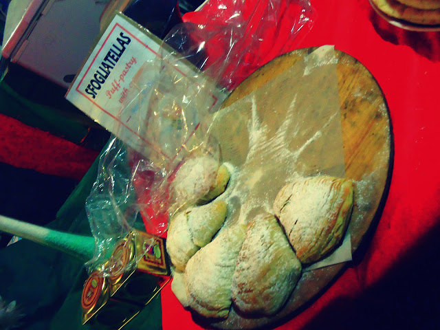Las deliciosas sfogliatelle (también llamadas "sfoglatellas") un postre típico napolitano hecho de masa sfoglia u hojaldre y relleno generalmente de pasta de almendras, en este caso se reemplazó eso último por crema pastelera, lo que creemos fue la causa de la palidez de la masa. Valor por porción 12 AR$.