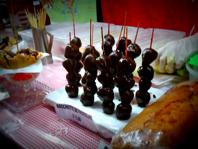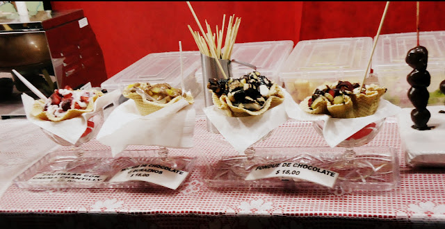 Aquí se hallaban sólo las variedades más populares y accesibles (realmente). Brochettes de fresas bañadas en chocolate amargo de gran calidad (13 AR$ ó 2,65 US$), bombones con avellanas (12 AR$ ó 2,45 US$), amargos macizos (12 AR$ ó 2,45 US$), dulces de higos (15 AR$ ó 3,10 US$), con distintos frutos secos, fondue (18 AR$ ó 3,70 US$) y todo lo necesario para recrearlo en casa.