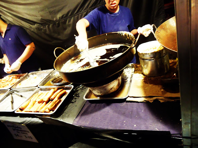 Seguramente uno de los puestos con peor fama, primero por ser chino (?) y segundo por tratar con pescado fresco para sus recetas. Pero la realidad al menos aquí debía superar bastante las expectativas del público ya que no sólo era uno de los stands más ordenados y limpios (sí, limpios) si no también de los pocos que llevaban consigo refrigeradores portátiles.