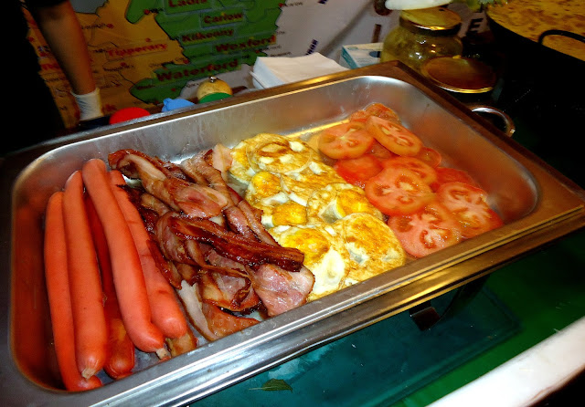 Para el campo gastronómico ofrecían fast food... salchichas, huevo frito y panceta todo para meter en un colosal sándwich.